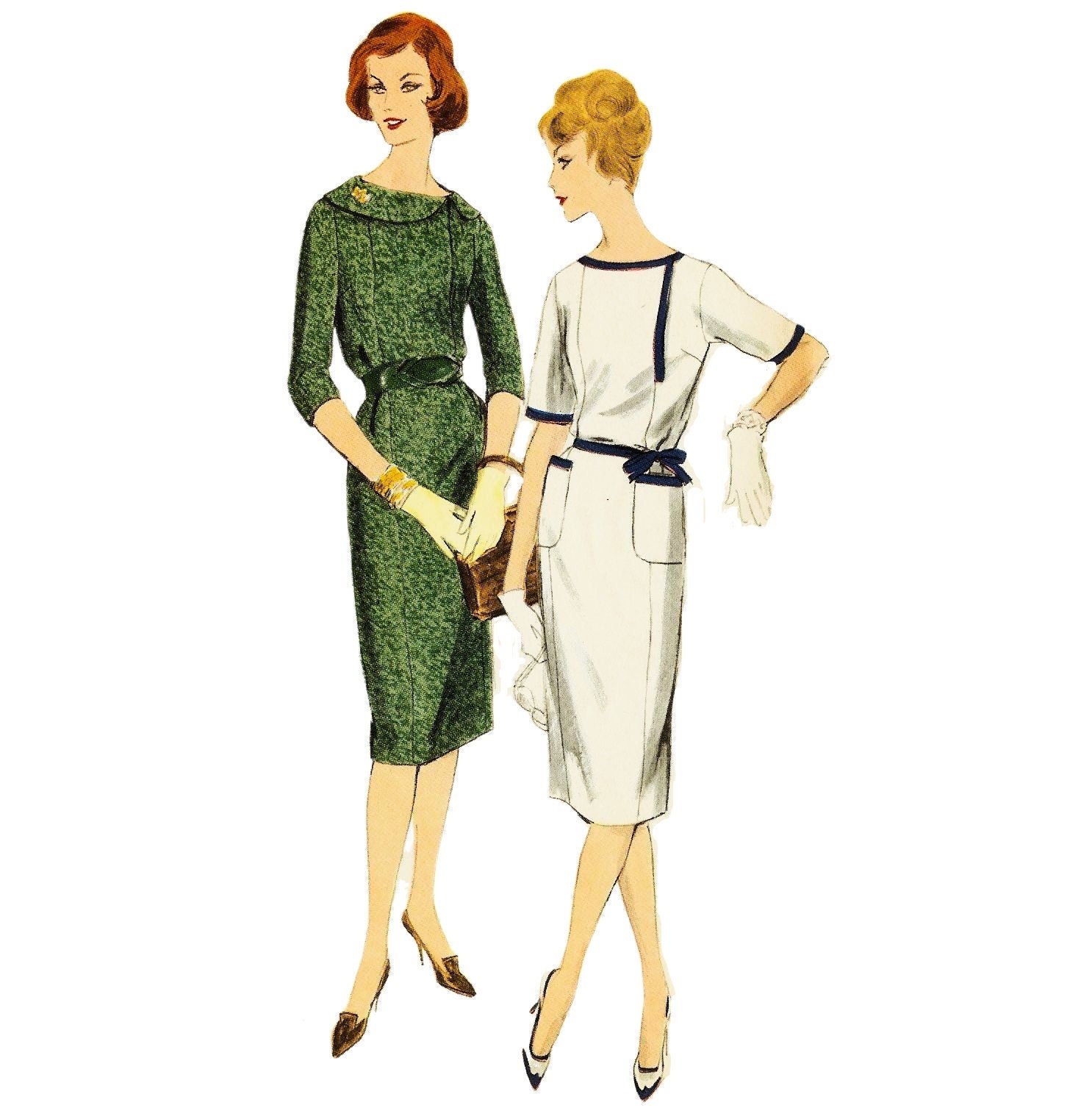 1950s Dress With Asymmetrical Details Sewing Pattern Vogue Etsy